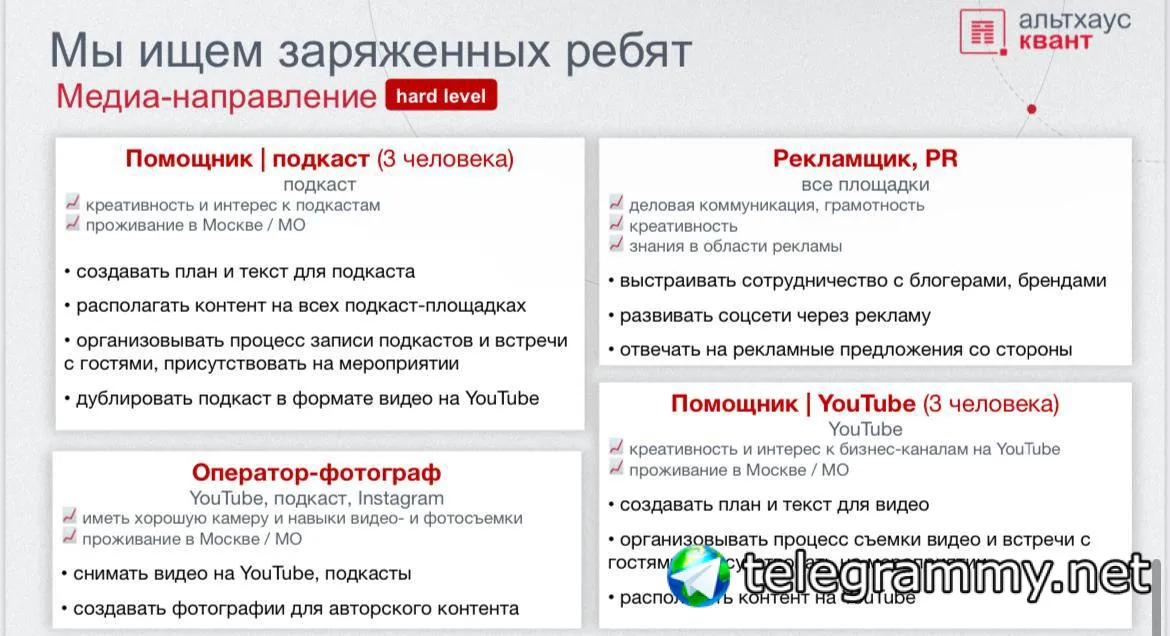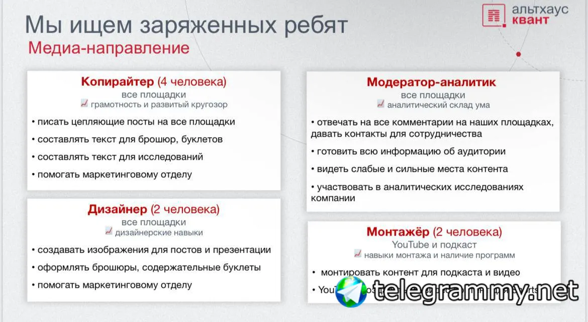 В настоящий момент мы ищем маркетолога в команду Альтхаус Квант, который сможет получить: