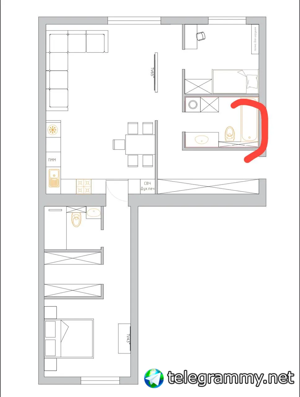Вот об этом тоже думал , просто если один санузел оставить придется всем в спалью ходить в туалет
