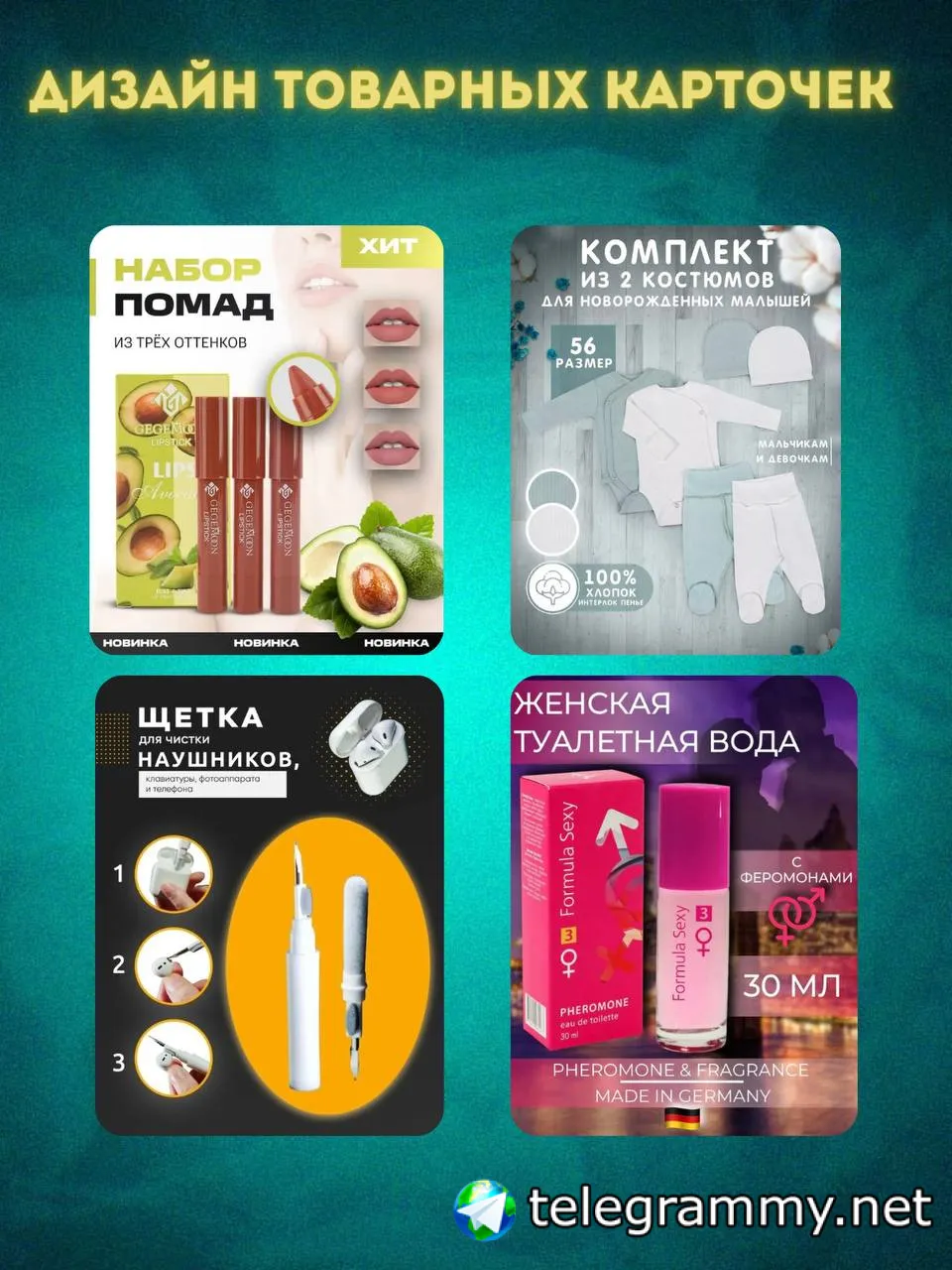 Оформление карточек товаров, визиток, гайдов, логотипов, сообщества ВК