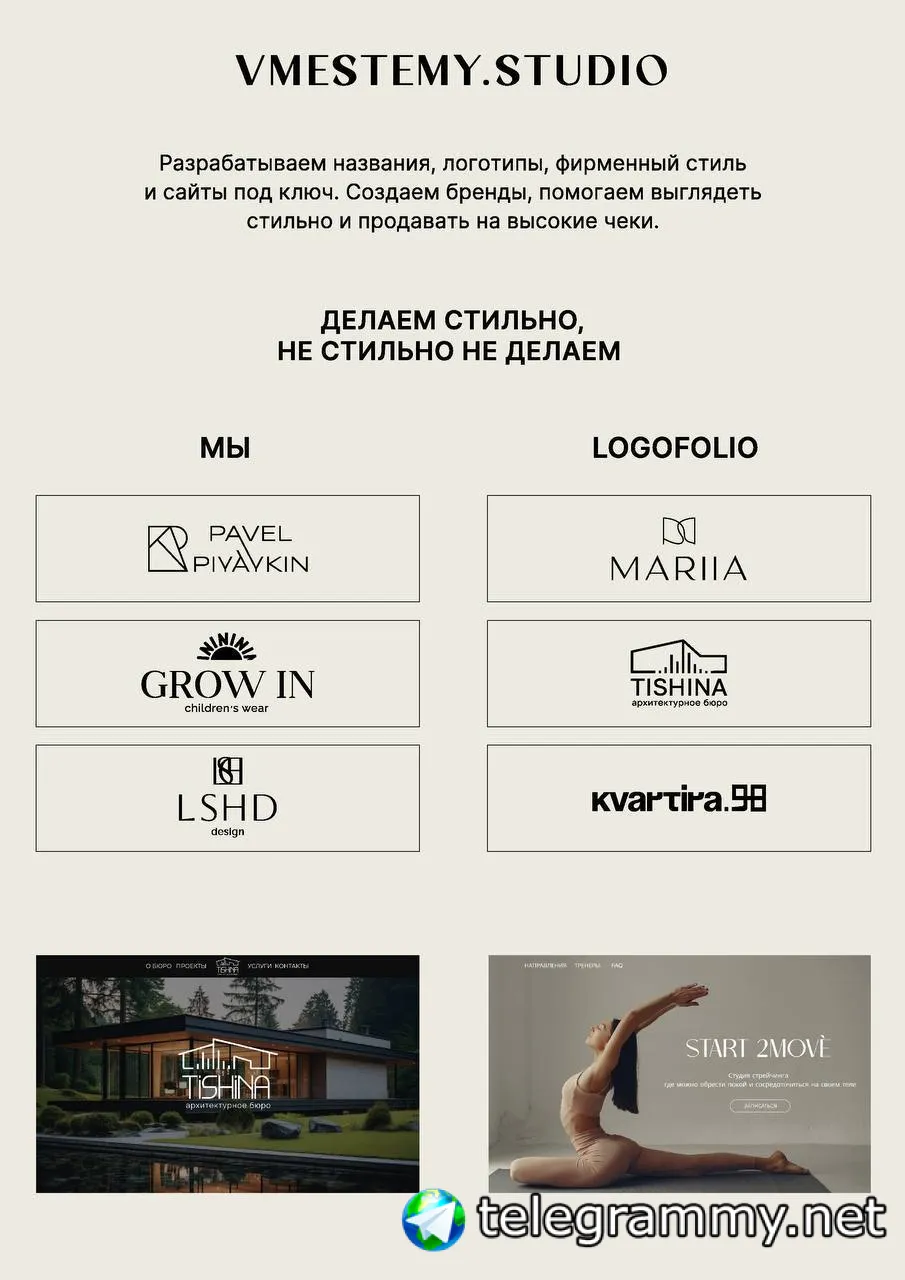 Здравствуйте, если вы планируете разработать: логотип, фирменный стиль, сайт, нейминг или брендинг, то это сделаем мы - «VMESTEMY Studio»