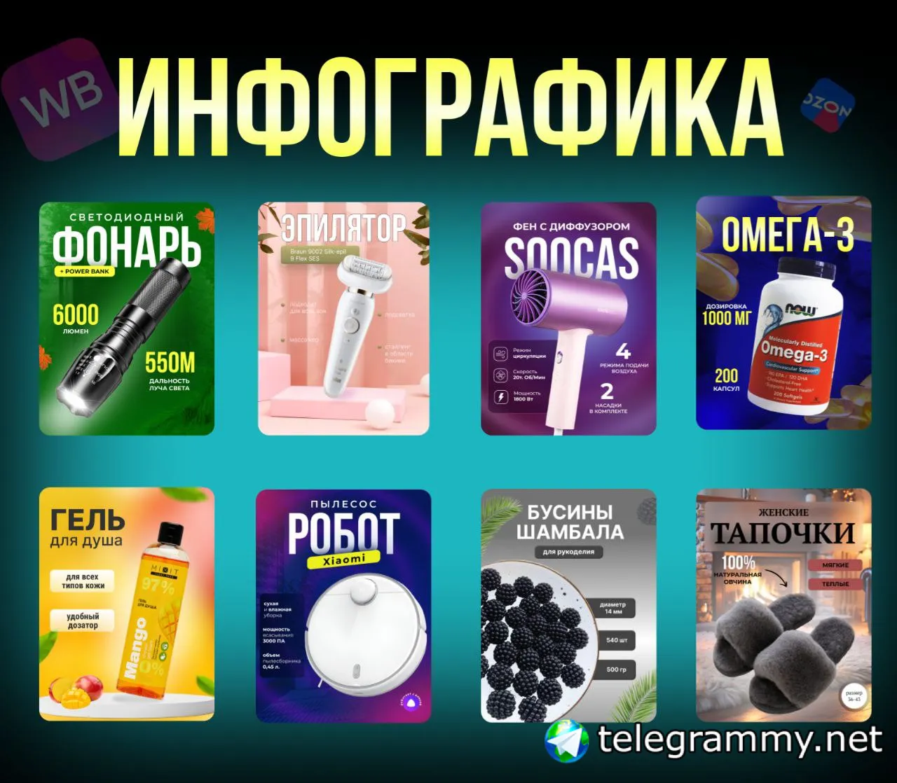Я создам уникальную ИНФОГРАФИКУ для твоего товара для маркетплейса🔥