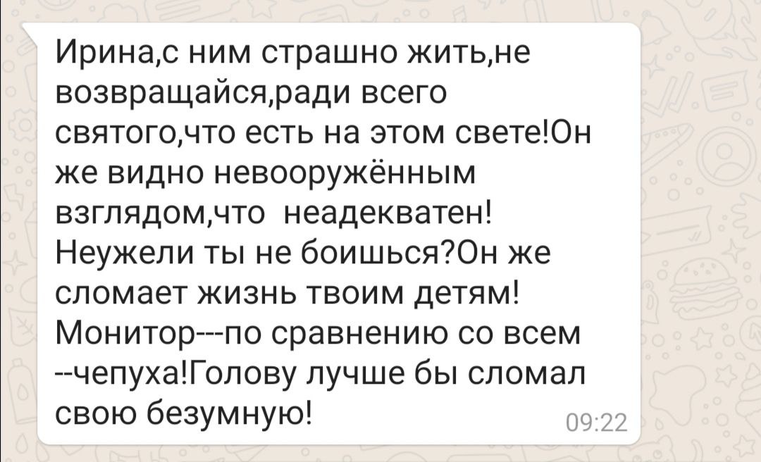 Вот что написала мне мама чистокровного абьюзера психопата 43 лет