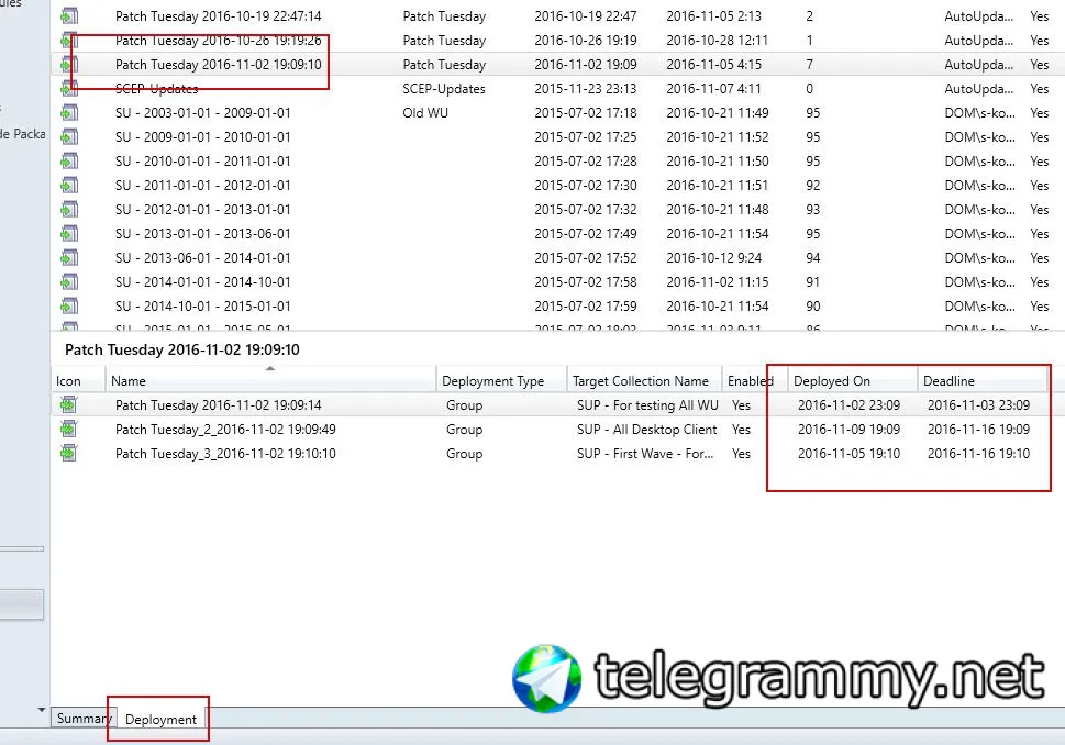 Вообщем при создании развертывания Крайний срок установки я выставлял "как можно скорее".