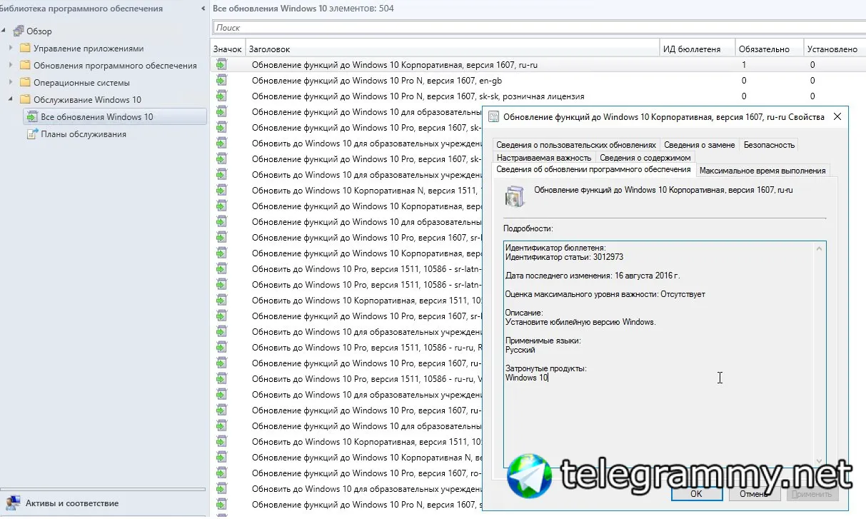 Вроде бы в sccm нашел и скачал обновку "обновление функций до windows 10, 1607" и пульнул деплой на 1507. ccm увидел ее и выкачал. При установке плюет ошибку 0x80240020
