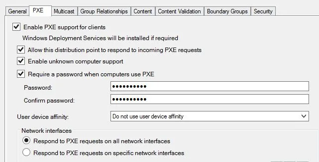 Коллеги может кто подскажет как нужно правильно настраивать DP чтобы включилась загрузка по PXE. Обычно ни каких шаманств с WDS не требовалось. Но сейчас видно что загрузку захватывает WDS, а не SCCM. Загрузочные образы на DP отправил, галочка сделать доступными при загрузке по РХЕ была. Задача по установке есть работает нормально с клиента, а вот по РХЕ не работает. Даже не знаю какие логи копать... SCCM 2012 r2, Win2012r2.
