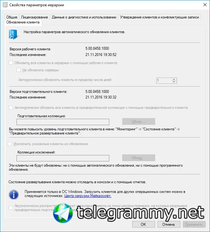 Обновился до 1610. На первый взгляд все хорошо. Но надеялся, что обновление решит один из моих вопросов - не решило. Озвучу сам вопрос.. в параметрах иерархии галки на вкладке обновление клиентов не активны... думал как раз после обновления на 1610 станут активными... в чем может быть проблема?