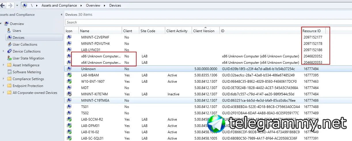 это все ресурс айди девайсов, которые задискаверены через нетворк дискавери или ад, но без клиента