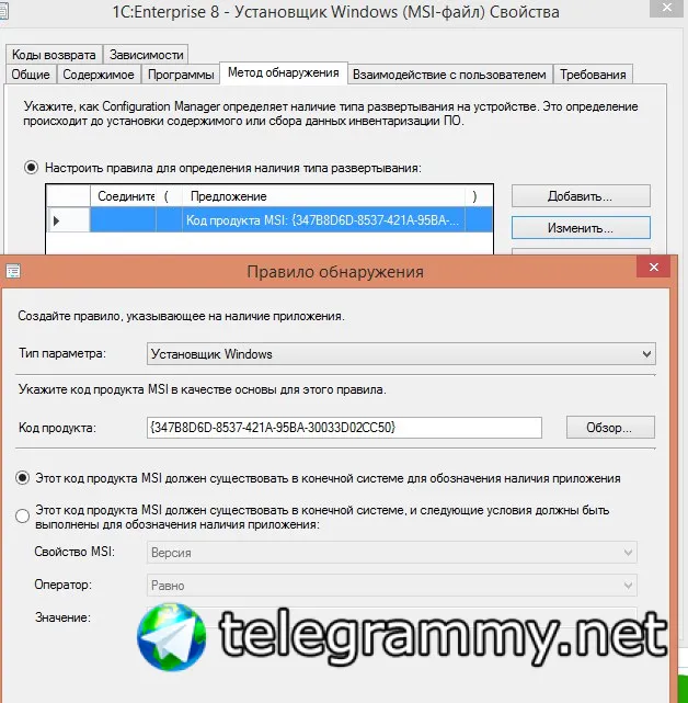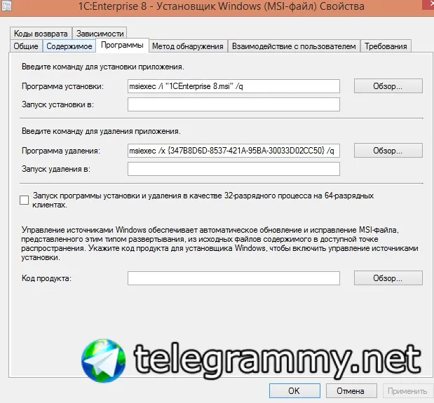 И тут тоже укажи код продукта msi снизу