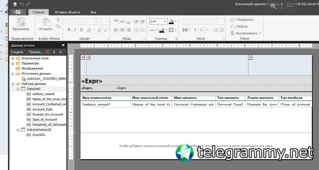 ты видимо просто не туда впихиваешь текст. я мучался немного на файле mof помню, т.к. тоже в синтаксисе какой-то косяк был. и вот на этом отчете.. не мог найти где это поле "текст"