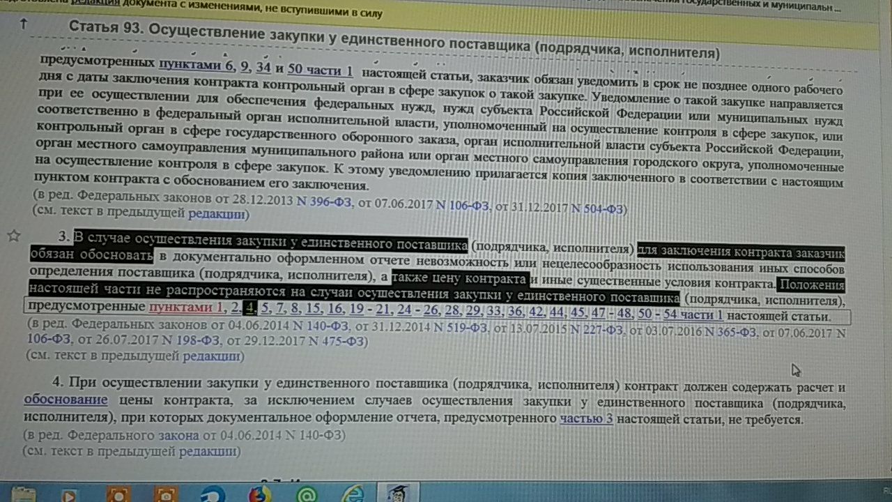 3) в ч. 4 ст 93 - об отсутствии обязанности включения в КОНТРАКТ расчёта и обоснования.
