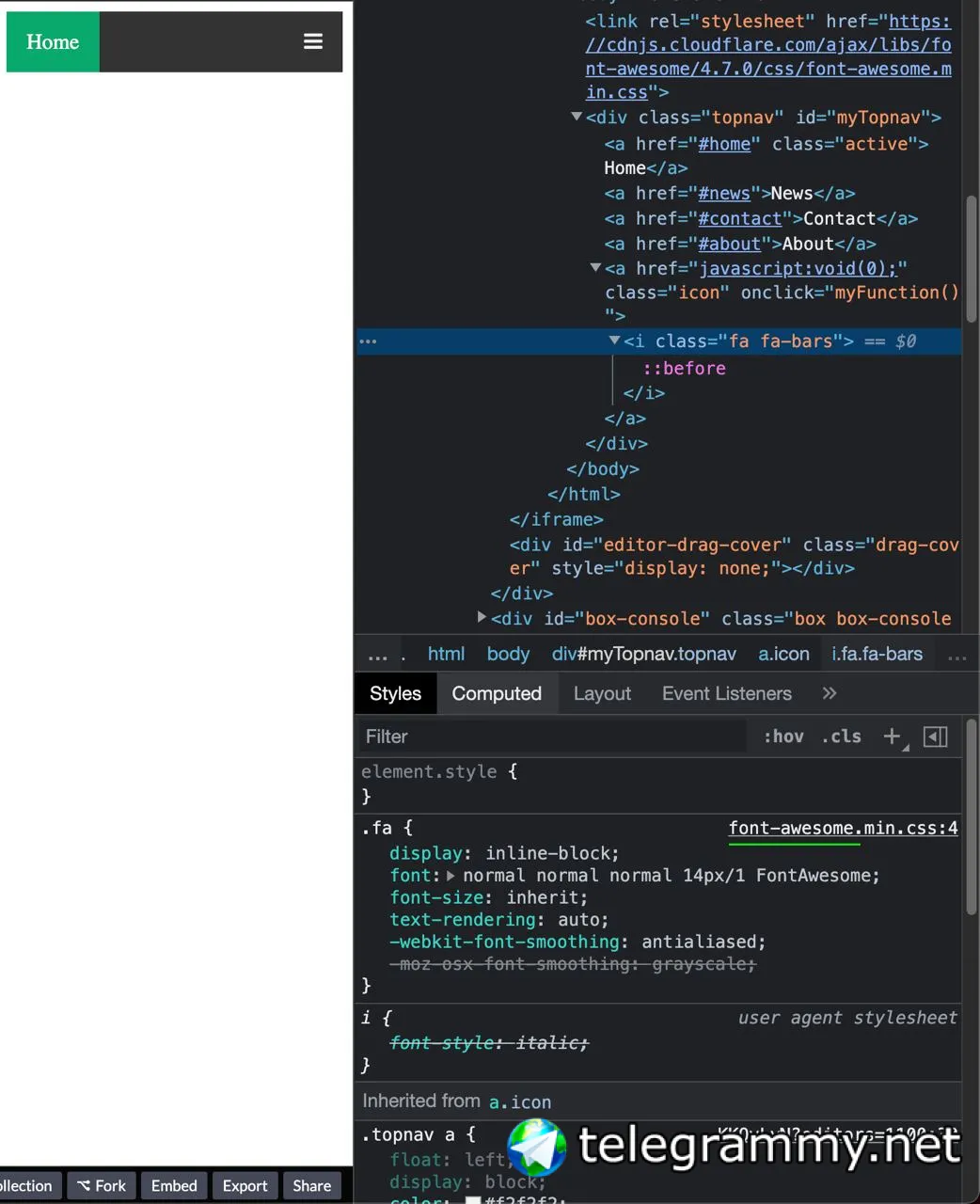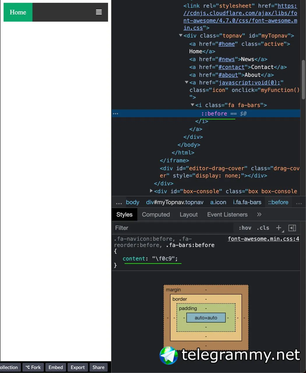вот мой вопрос: где рисуется сам элемент с классом .icon ? (эти три белые полоски в столбик)