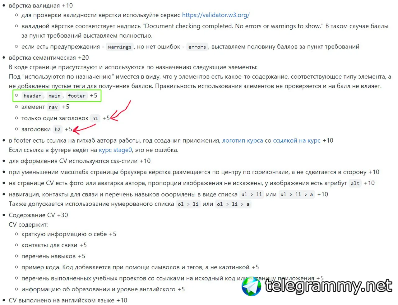 я к тому скинула, что в требованиях почему-то именно 1 заголовок h1, и как минимум Наличие h2 и хедере, футера и мейна, скорее всего так, как это обычно делает - сверху хедер, дальше мейн и футер)