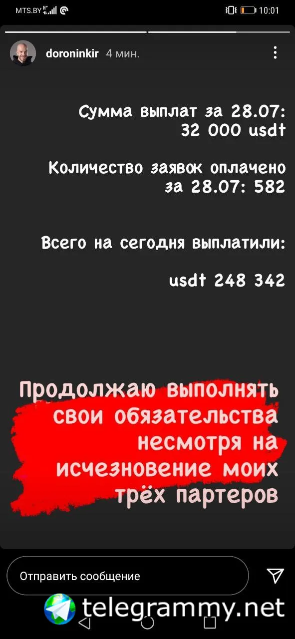 Уже сколько форм где только не заполняли.То скрины,то видео кабинета снимите,одна форма теперь другая.То средства на легальность проверяет,прямо как налоговая.Скоро семейное фото будем отправлять по его желанию.Уже не знает что придумать этот Доронин.Денег только как не было,так и нет.Врет как дышит.