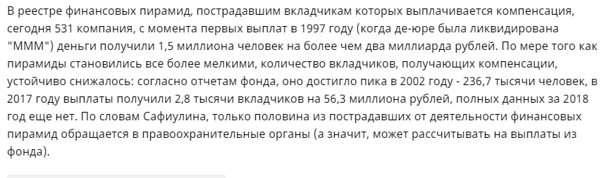 Нет! По закону компенсация от государства пострадавшим в финансовой пирамиде составляет 35000 рублей. Всё!!! И то только тем кто подавал заявление в полицию до вынесения приговора. Для кого-то это копейки, для кого-то один месячный взнос по кредиту, а для кого-то половина вложенной суммы. Так что успевайте!