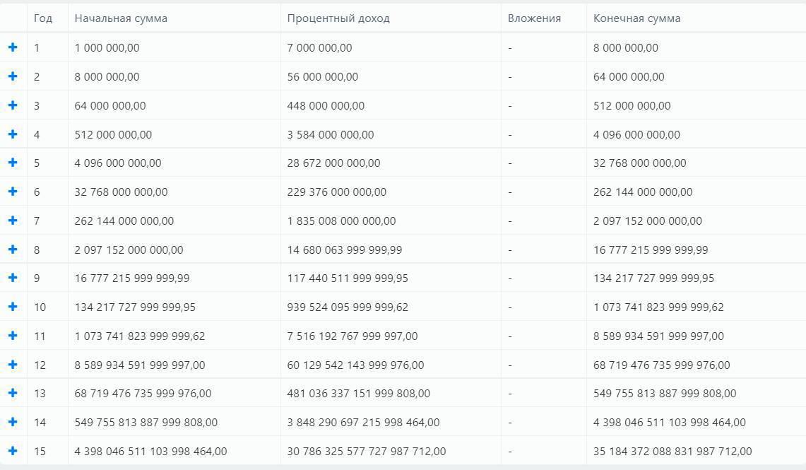 Таблица для тех, кто до сих пор верит, что 700% годовых в Финико были реальны и если бы не обстоятельства, всё было б хорошо и всё всем выплатилось.