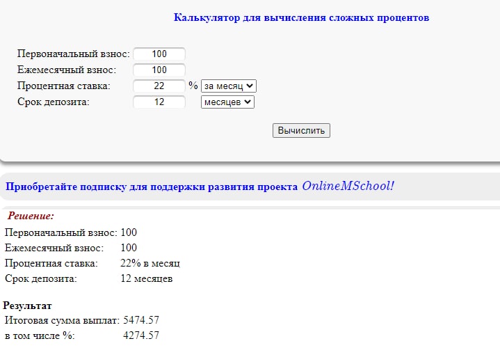 При вложении 100 единиц (неважно руб. $, евро), и реинвестиции вложенной суммы ежемесячно и 22% в месяц доходности, смотрите выше, что получается, 54 000 единиц. Скажите, если трейдер так умеет работать, зачем ему вообще кто то?