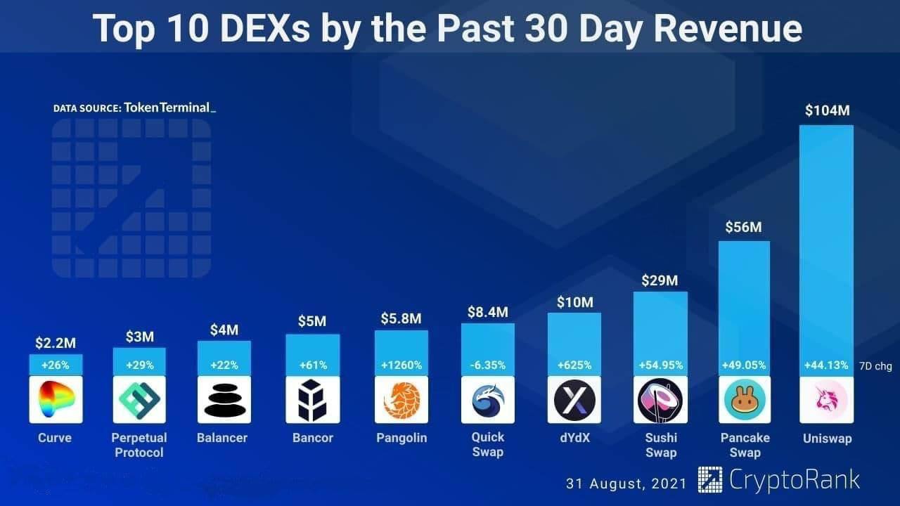 Uniswap заработала 104 миллиона долларов, увеличив ежемесячный доход на 44%