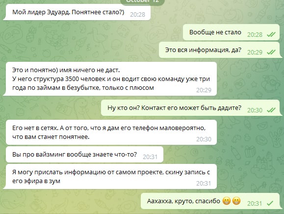 Крутые лидеры со структурой в 3500 человек и которых нет в социальных сетях и лица не покажут. Агонь товарищи 😂