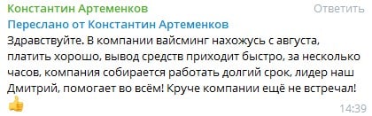 Вайсминг платит и работает как часы 💪💰