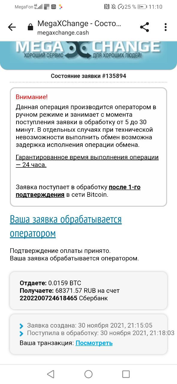 Здравствуйте. Вот объясните пожалуйста, делала обмен с биткоинов на карту через мегасшанге.каш. Уже 68 подтверждения сети в транзакции, сколько вообще должно быть подтверждений