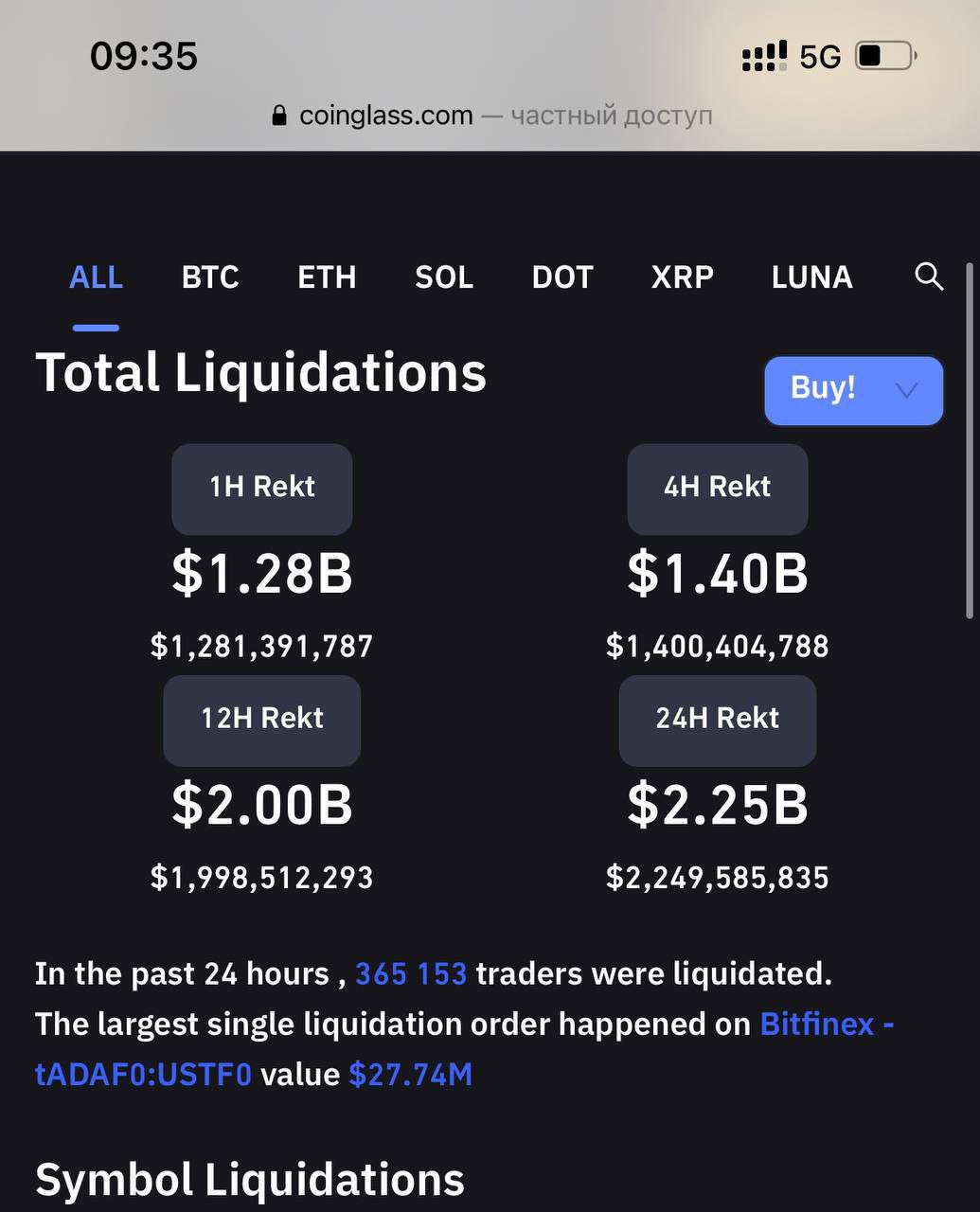 Ликвидации за последние сутки