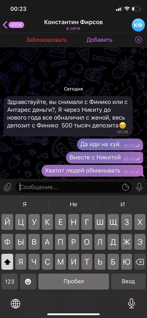 К чему это тут? Данного человека в чате нету, по участникам не находит. Обычная рассылка спама