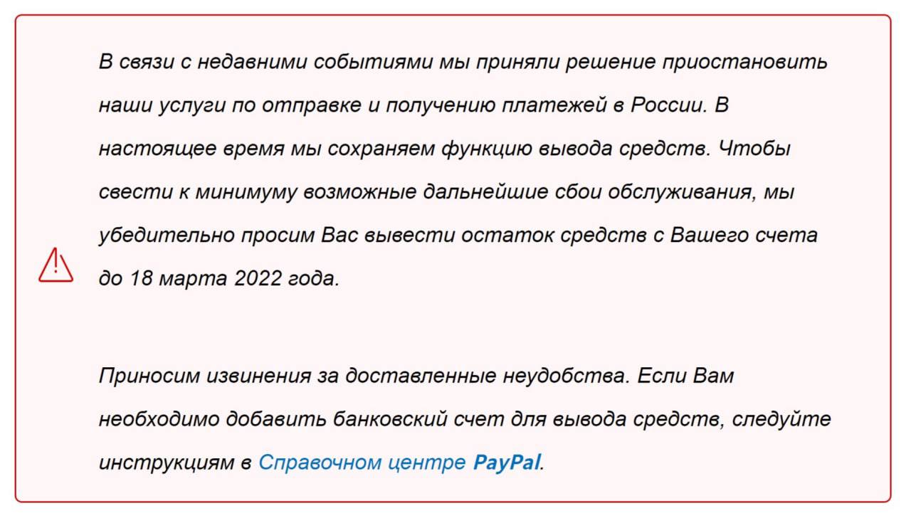 ❗️ Все электронные кошельки россиян в системе PayPal будут заблокированы 18 марта, к этой дате нужно вывести все средства со счетов — заявление