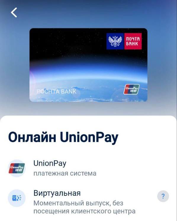 Почта Банк запустил виртуальную карту UnionPay 🌏