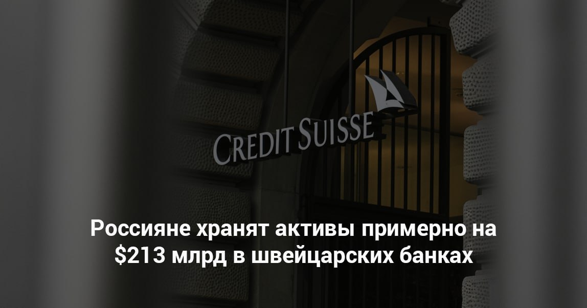 Около 4% активов хранящихся в Credit Suisse - второго по величине банка Швейцарии, принадлежат россиянам, что составляет примерно 33 млрд франков, пишет Bloomberg.