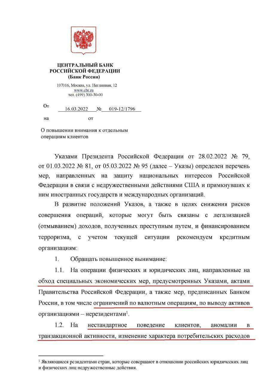 ⚠️ ЦБ рекомендовал банкам усилить контроль за транзакциями с цифровой валютой, которые направлены на вывод капитала из страны