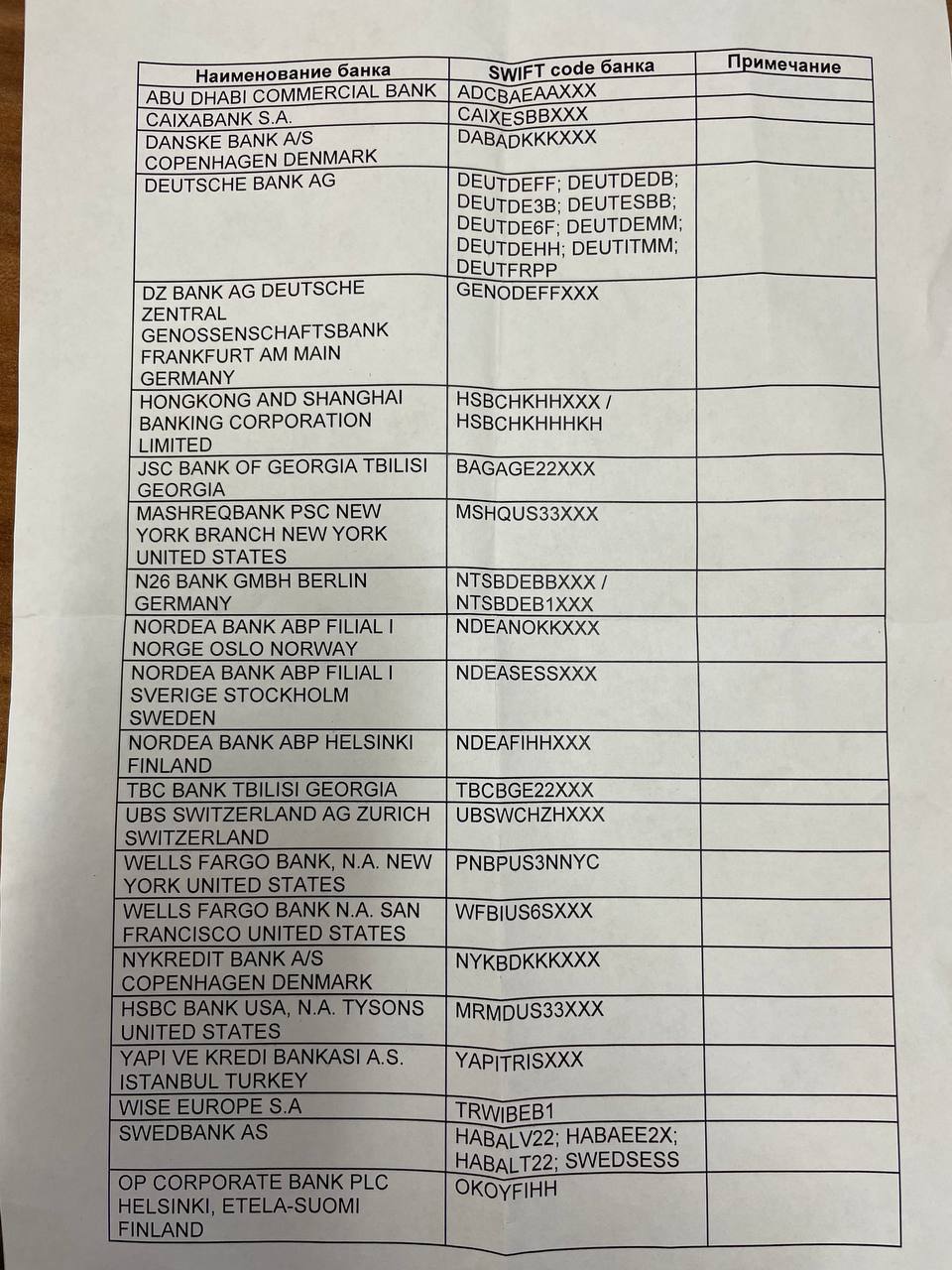Список банков отправляющих Свифт- возможно кому-то будет полезно