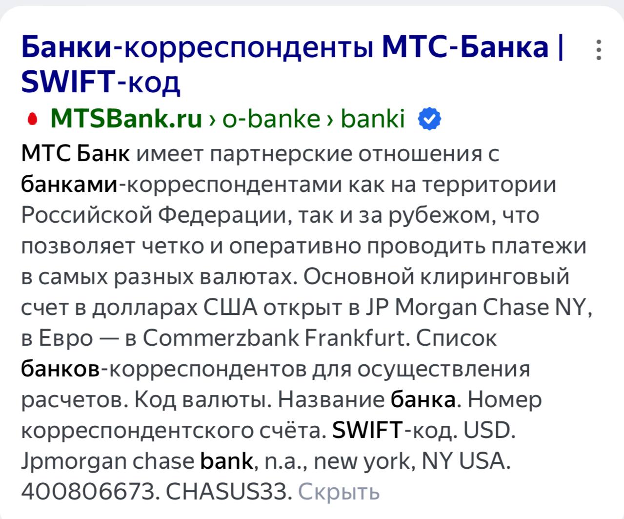 Кто-нибудь владеет информацией о «МТС банк (swift)» какие плюсы и минусы?