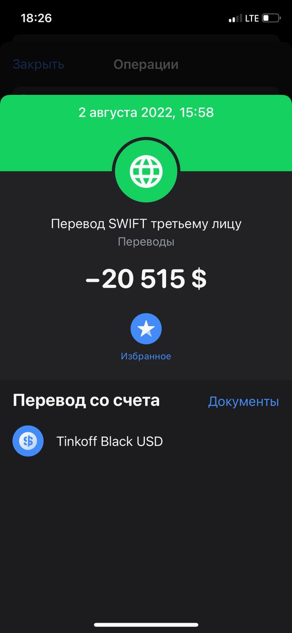 Для информации :закончилась вроде как моя эпопея со Свифт, 107000 прилетели наконец на счёт застройщика в Турцию вчера. 47 дней заняло. Через росбанк, далее висели в Societe Generale, корреспондент отвечал на Свифт-сообщения, говорил, ждите, после третьего сообщения с запросом о сроках пропустил платёж и он долетел в этот же день в Турцию. Всем удачных переводов!