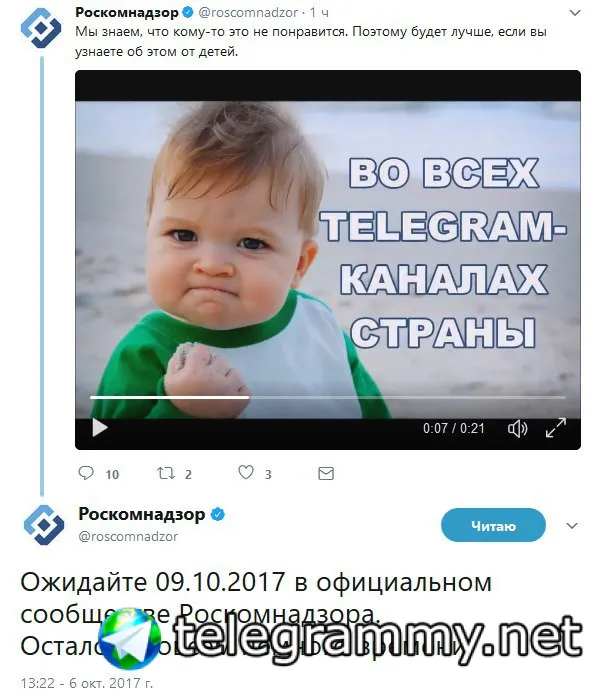 Роскомнадзор пообещал что-то нехорошее по отношению к Телеграму, возможно, блокировку? Ждем 09.10.2017