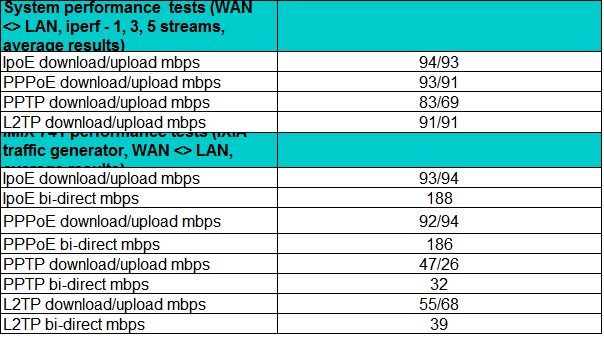 pptp/l2tp производительность хромает, но ipoe/pppoe близка к максимально достижимой.