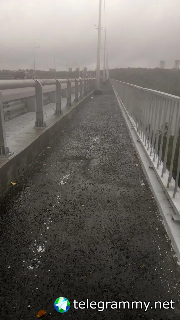 На Мызинском мосту ещё бы асфальтная крошку подмели в сторону нагорной части. Было бы совсем красота