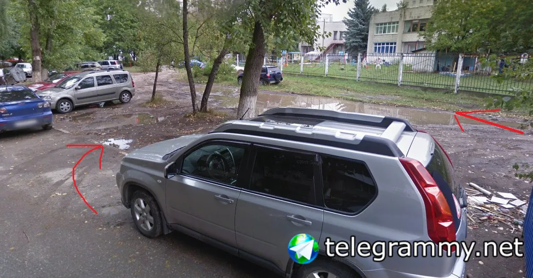 Всё так. Её раскатали и запарковали, что из площадки стало болото