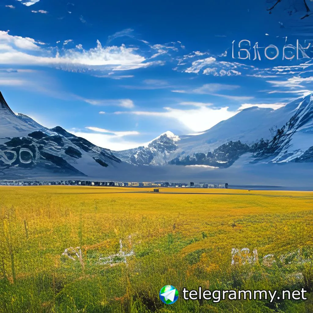 Фото сгенерировано моделью ruDALL-E от Сбера по запросу "гора со снегом и полями травы"