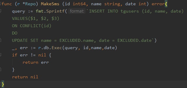 Для бота обратной связи для возможности ответить тем, кто запретил пересылать сообщения, храню в базе комбинацию из имени, айди и времени сообщения, и обновляю запись в бд с новым сообщением. Но у меня жалобы, не могу конфликтовать "нет уникального ограничения или исключения". Где ошибся?