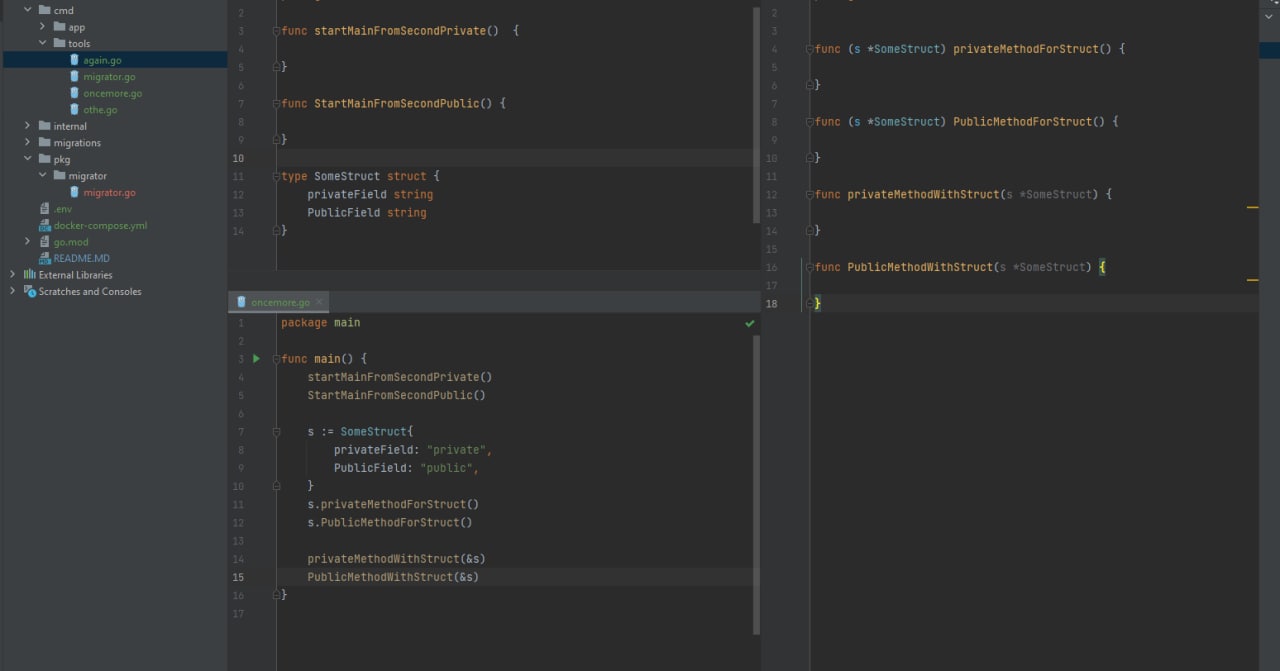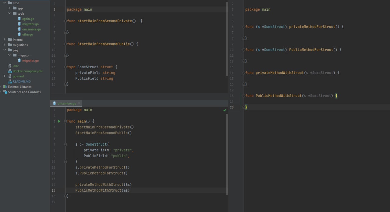 Соответственно обращаться к вызову функций и структур (что публичных что приватных) из этого пакета можно как угодно