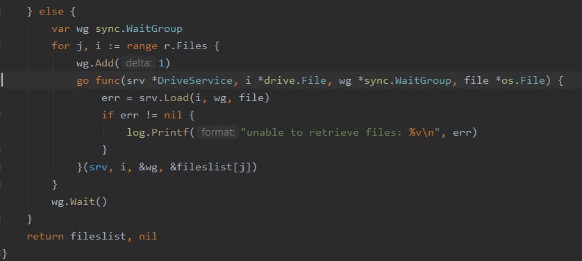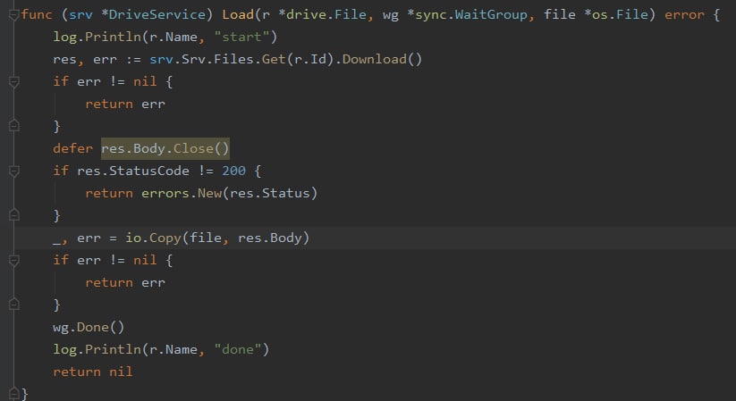 Пытаюсь многопоточно сохранять файлы из драйва в os.File масив, жалуется на копирование в райнтайме runtime error: invalid memory address or nil pointer dereference