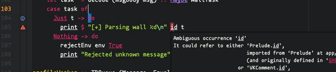ох щит. У меня сама задумка была использовать overloaded record parameters. Не получится значит иметь и подсветку ghc-mod?
