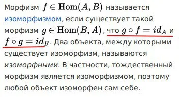 Ну, говоря проще, в категории множеств, например, изоморфизм - это биективное отображение