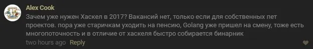 В общем, язык очень сыроватый, но приятный. Я бы хотел использовать его чаще. Но тут и Haskell использовать в продакшене бывает больновато, что уже говорить про Idris...