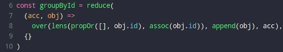 вот простенький редьюс, кто-то в жс чате просил задачку решить - если бы reduce, over, propOr, assoc, append не были каррированы из коробки, это выглядело бы как говно