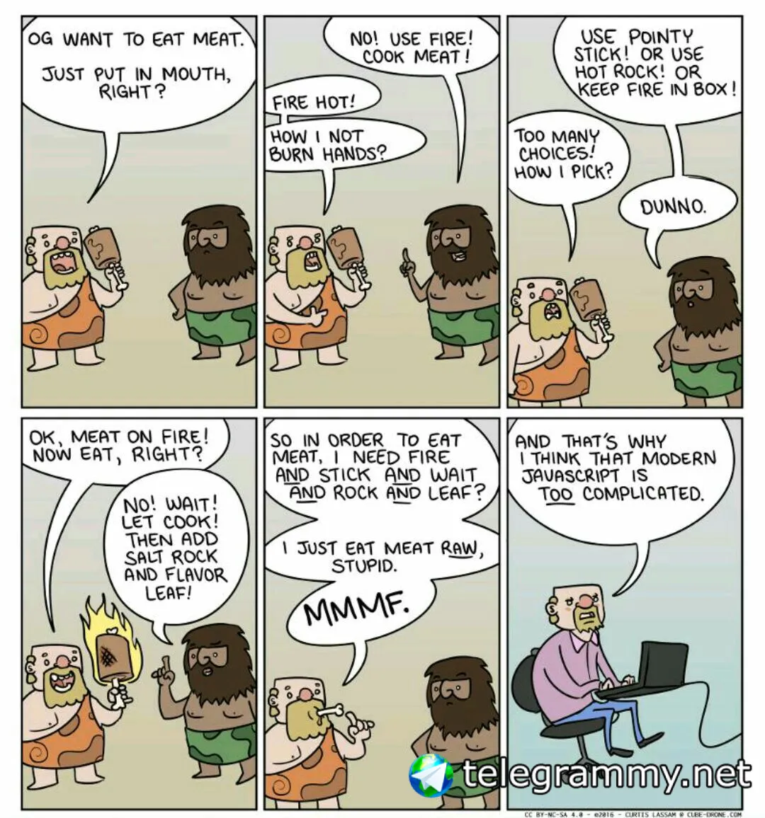 оч забавно, что человек сам себя сравнивает с жителями каменного века, а современный джс с эволюцией