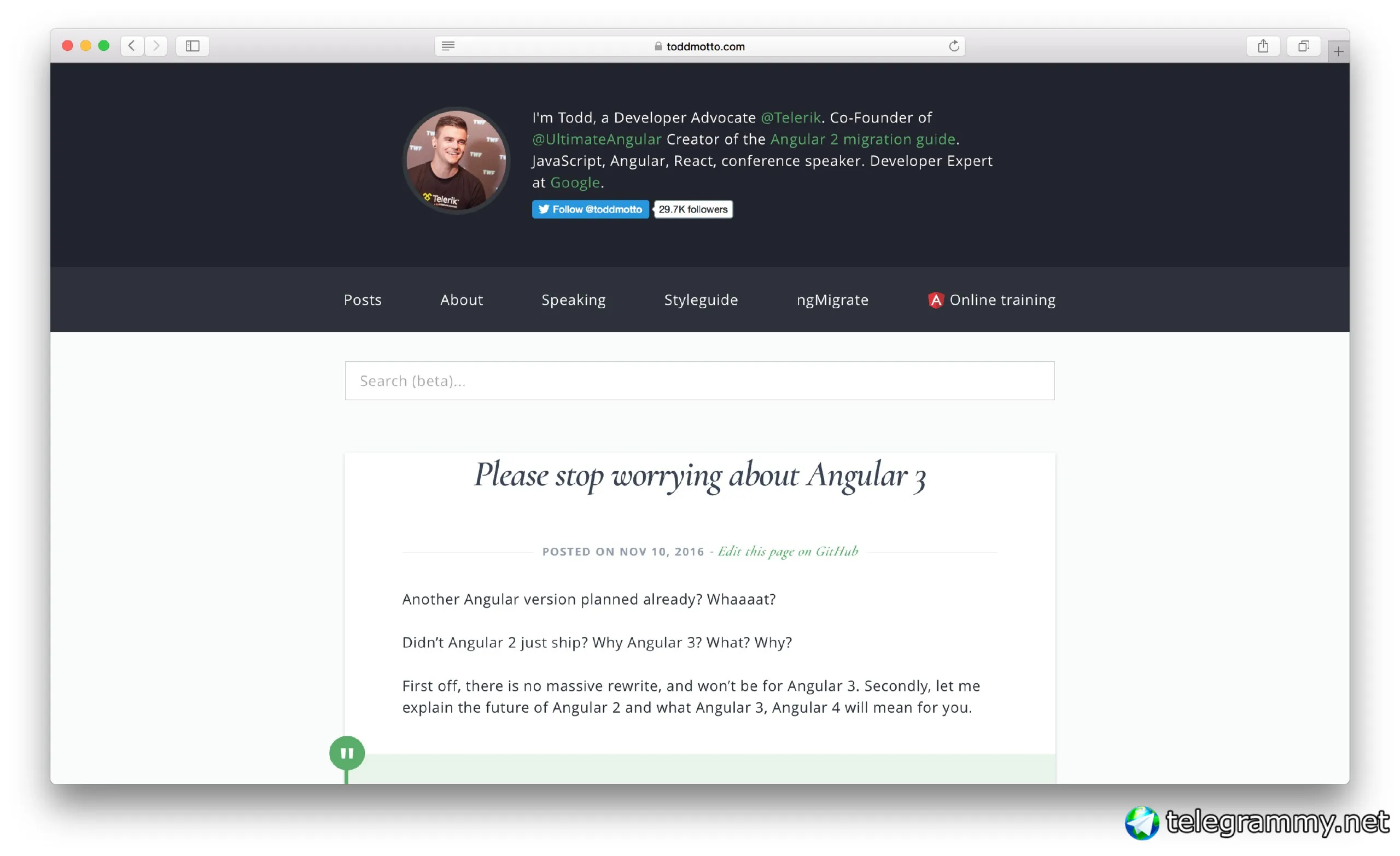 Не успел выйти Angular 2, как Гугл анонсировал Angular 3: Тодд Мотто объясняет неразбериху с версионированием — http://amp.gs/zTZg