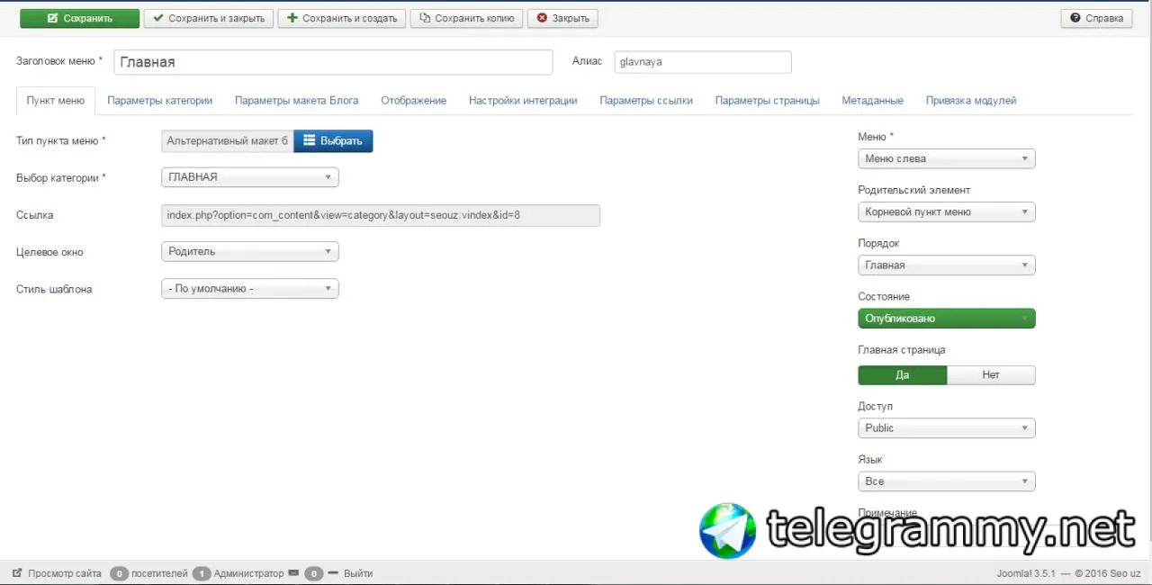 В НОВОМ меню, создаю пункт меню, и выбираю вместо материалы статья, системные ссылки, псевдоним пнкта меню...