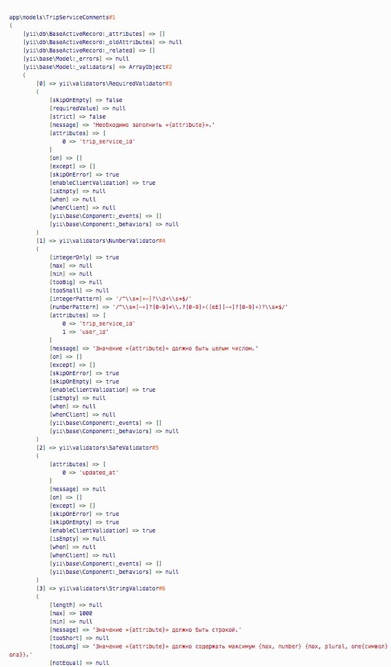 окей, тогда дамп $service перед $service->tripServiceComments as $comment