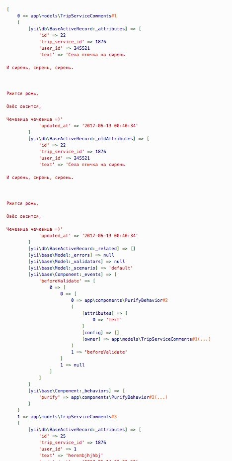 а следующиий скрин дампа $service->tripServiceComments
